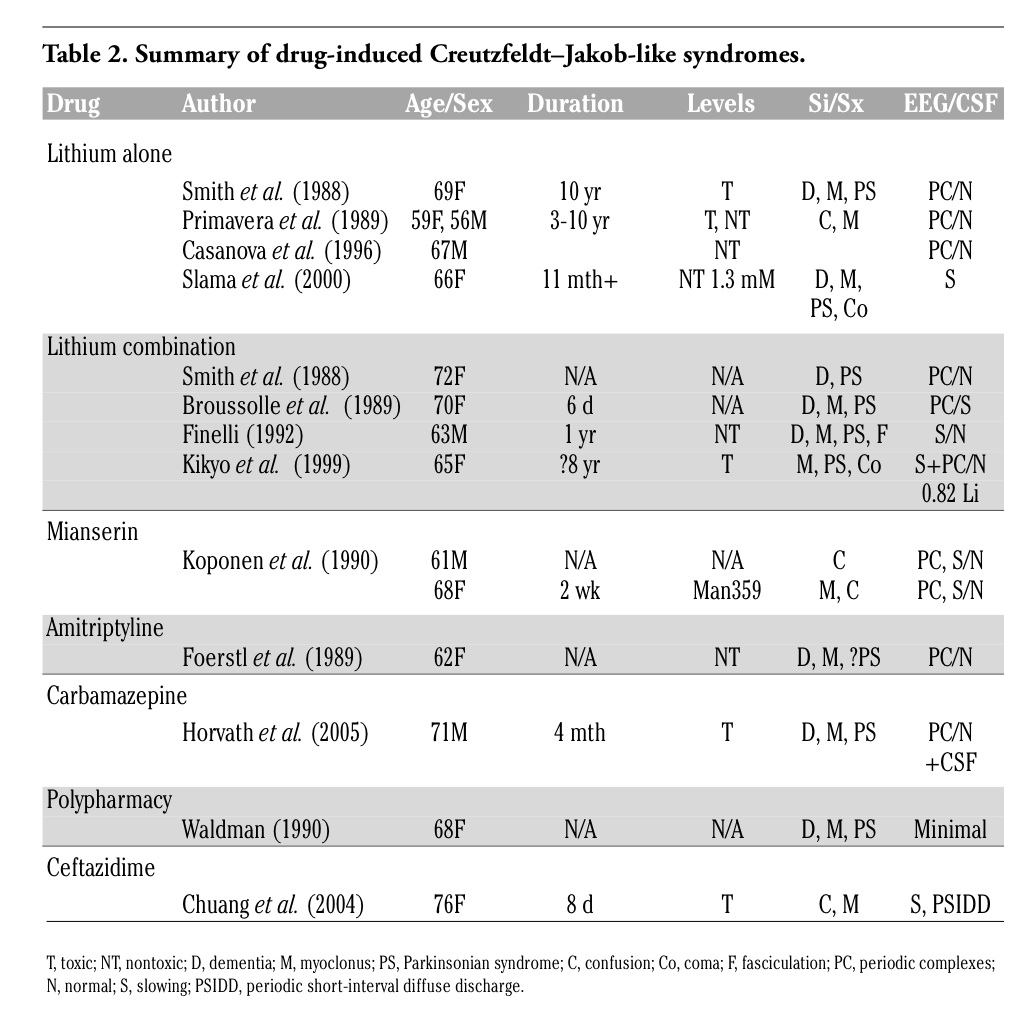 | Table 2. Summary of drug-induced Creutzfeldt–Jakob-like syndromes. |