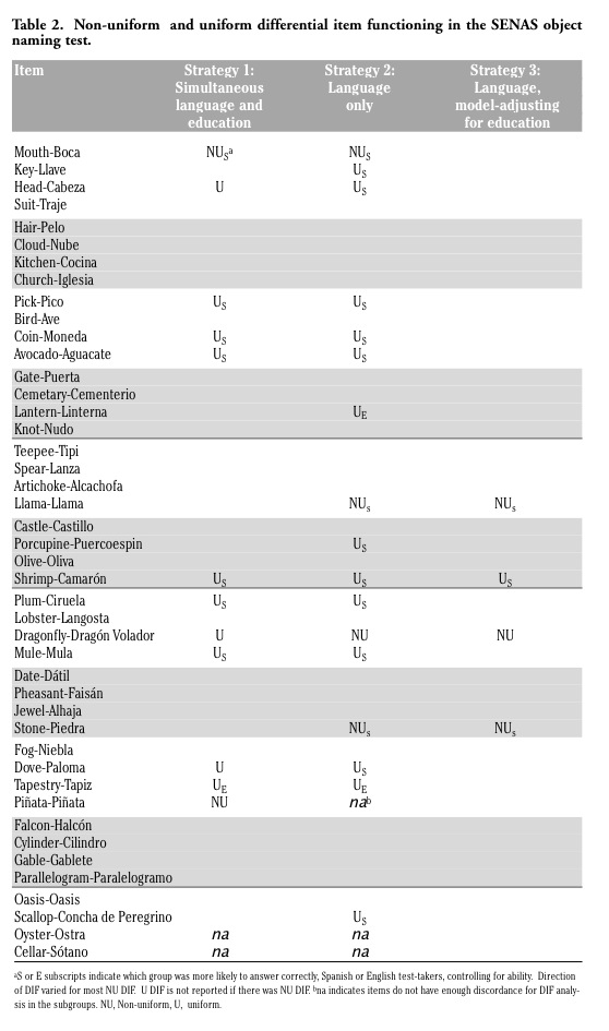 | Table 2. Non-uniform and uniform differential item functioning in the SENAS object naming test. |