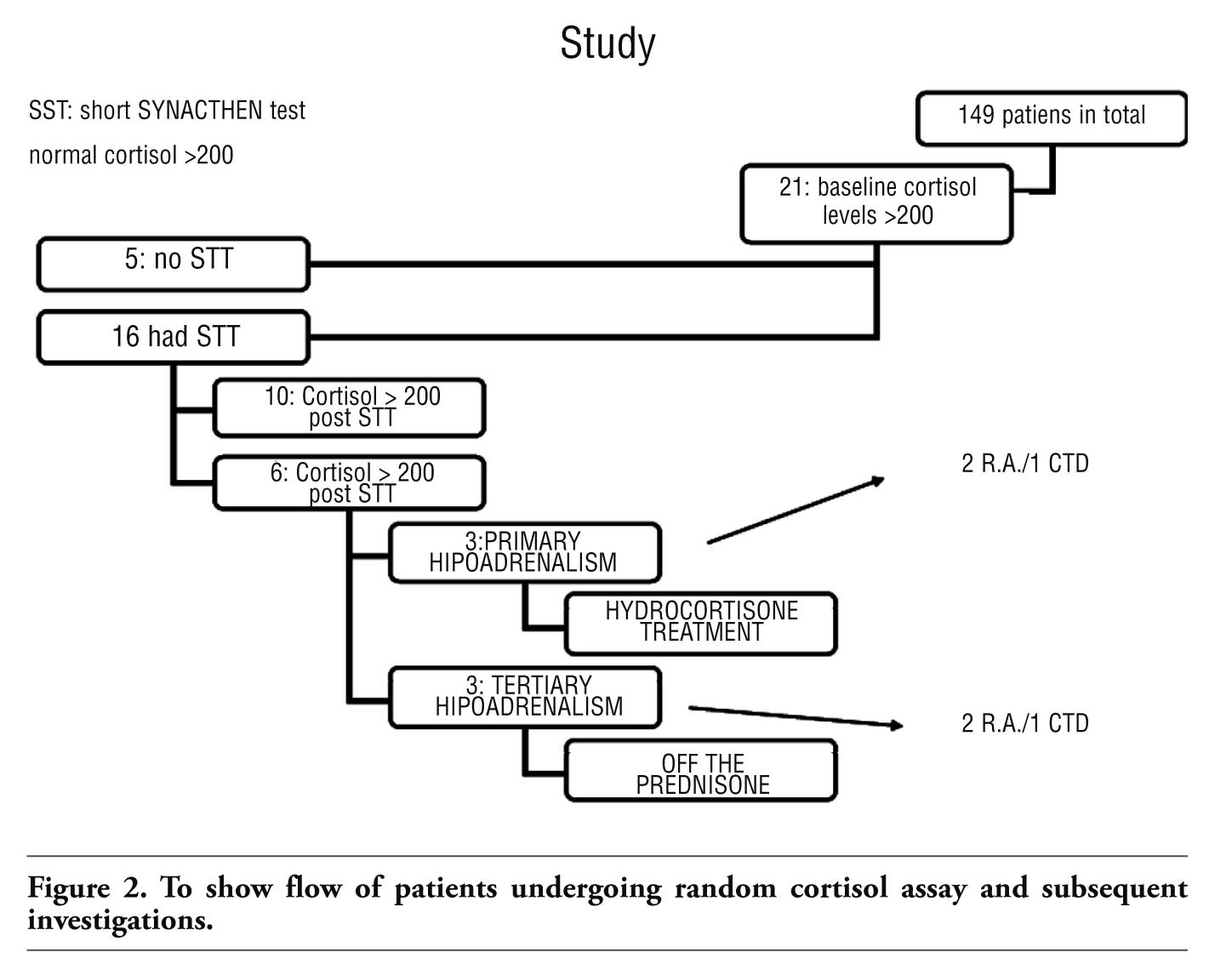 | Figure 2. To show flow of patients undergoing random cortisol assay and subsequent investigations. |