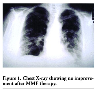 | Figure 1. Chest X-ray showing no improvement after MMF therapy. | |